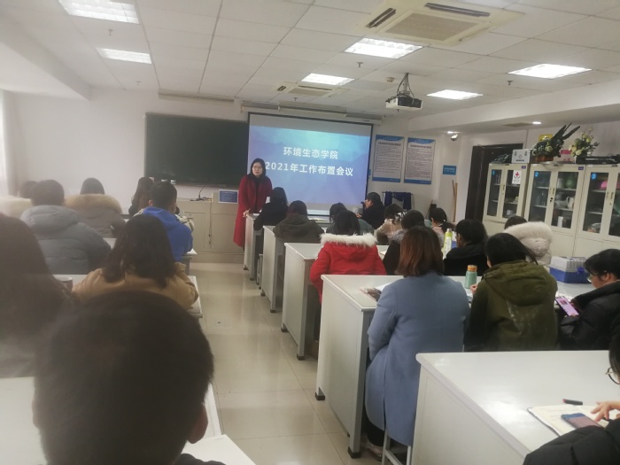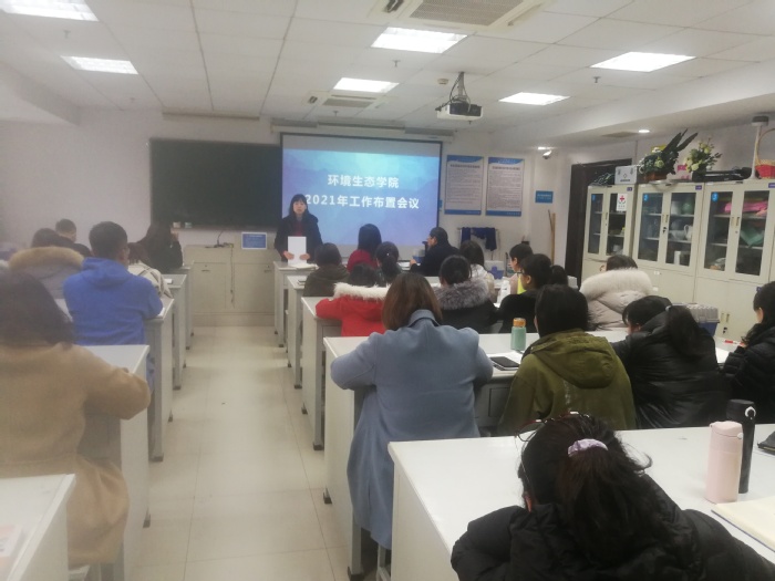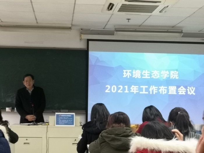 2月27日下午,环境生态学院在应天校区综合楼308召开工作会议,部署2021年重点工作。段英书记主持会议,校党委常委、副校长张益彬出席会议,学院全体教师参加会议。