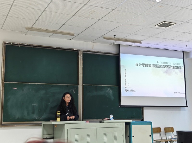 11月29日,环境生态学院在应天校区教学楼举办了主题为“从‘头脑风暴’到‘文化复兴’:设计思维如何重塑景观设计的未来?”的学术讲座,邀请到了安徽农业大学园林学院副教授、硕士生导师郑婕博士作为主讲嘉宾,与我院师生共同探讨设计思维在当代景观设计领域的创新应用与未来发展,风景园林系教师、全体环境艺术设计与风景园林设计专业学生参加讲座,段英书记主持本次讲座。