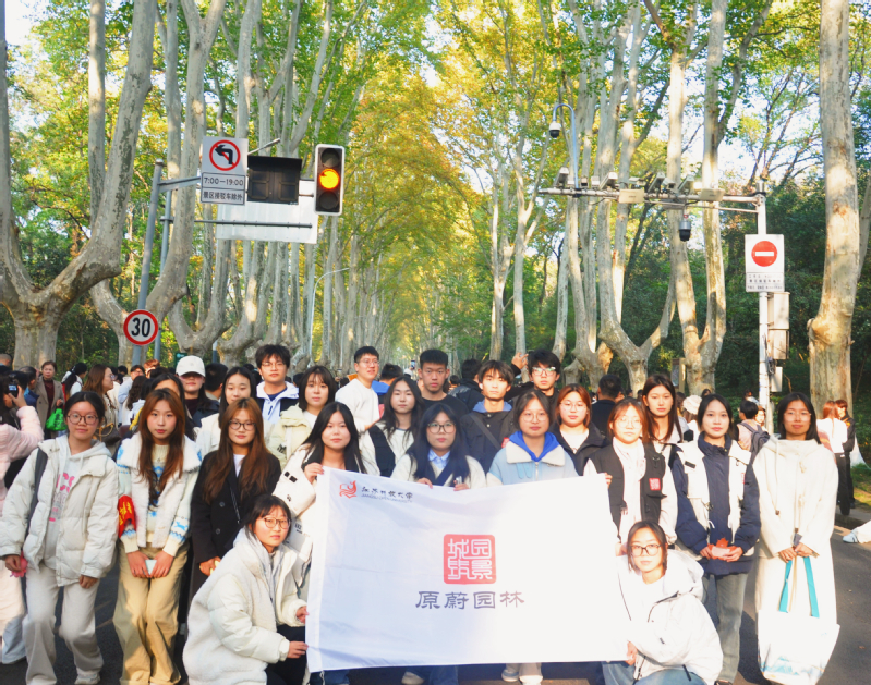金黄叶脉织就初冬盛景,百年法桐绵延金陵文韵。11月23日,环境生态学院原蔚园林社团“守护梧桐”志愿行动迈入第三载,22 名青春身影再度集结钟山风景区梧桐大道,以专业为笔、以热忱为墨,在绵延的绿脉之上,续写属于青春与传承的护绿篇章。