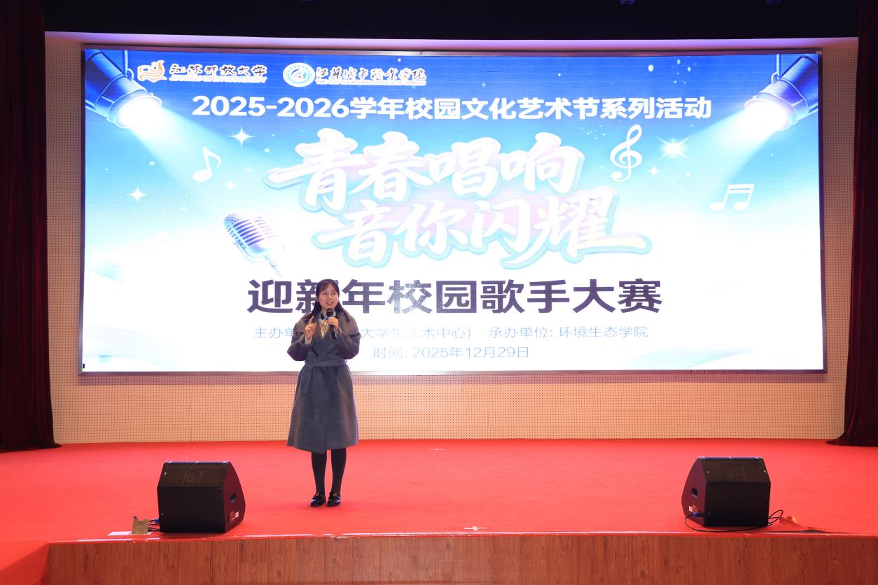歌声袅袅传暖意,青春灼灼赴新程。为深耕美育沃土,丰富校园文化肌理,给学子们搭建一个展现才华、抒发热爱的广阔舞台,12月29日,由校团委主办、环境生态学院承办的 “青春唱响 音你闪耀” 迎新年校园歌手大赛,在应天校区体艺馆406温情启幕。校团委(大学生艺术中心)副书记尹星、校后勤处副处长张莉、环境生态学院党总支副书记杨丹,各学院团总支书记及师生代表共计200余人齐聚一堂,共赴这场青春与音乐的美好之约。
