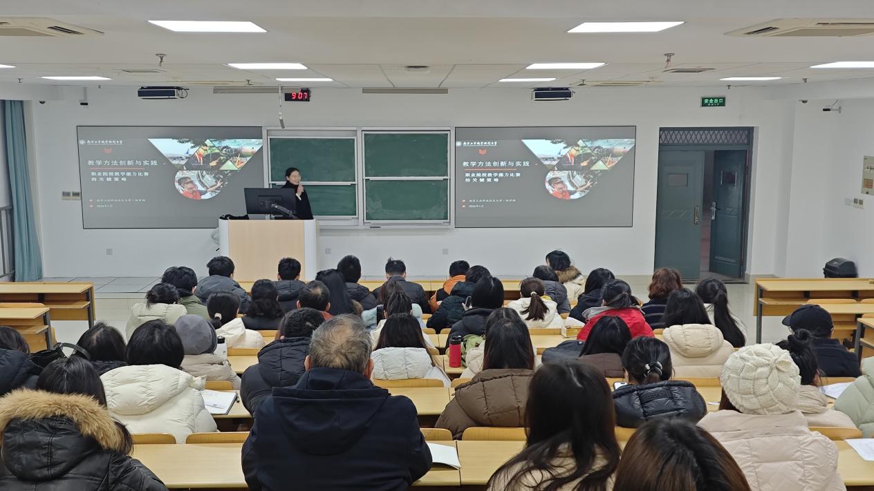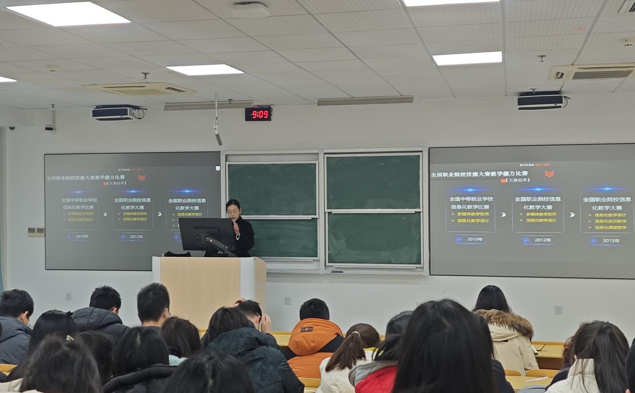 为深入贯彻国家职业教育改革相关部署,落实立德树人根本任务,切实提升学院教师教学综合能力与赛事竞争力,助力教师在职业院校教学能力比赛中取得优异成绩,1月24日上午,环境生态学院在应天校区教学楼101室组织开展“职业院校教学能力比赛的关键策略”专题培训,本次培训邀请到南京工业职业技术大学教务处副处长杨梦娜担任主讲专家,学院全体教师参与了此次培训。