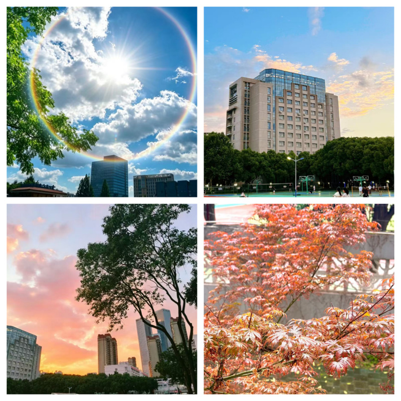 聚焦校园标志性场景,教学楼、图书馆、校道等地标在镜头下尽显独特韵味。《四季序章》《春与冬的序章》《秋染金梧,春绽粉枝》等作品,细腻捕捉春日繁花、秋日落叶、晴雪交替的四季变换;《日晕风光》《落日熔金,校园未晚》《云端落橘》定格晚霞、日晕等限定美景,《雨中的绯红信笺》记录雨后校园的清新诗意;《被阳光偏爱的角落》《校园风景角》则发现林荫道、走廊光影等角落小美好,让校园景致绽放动人光彩。